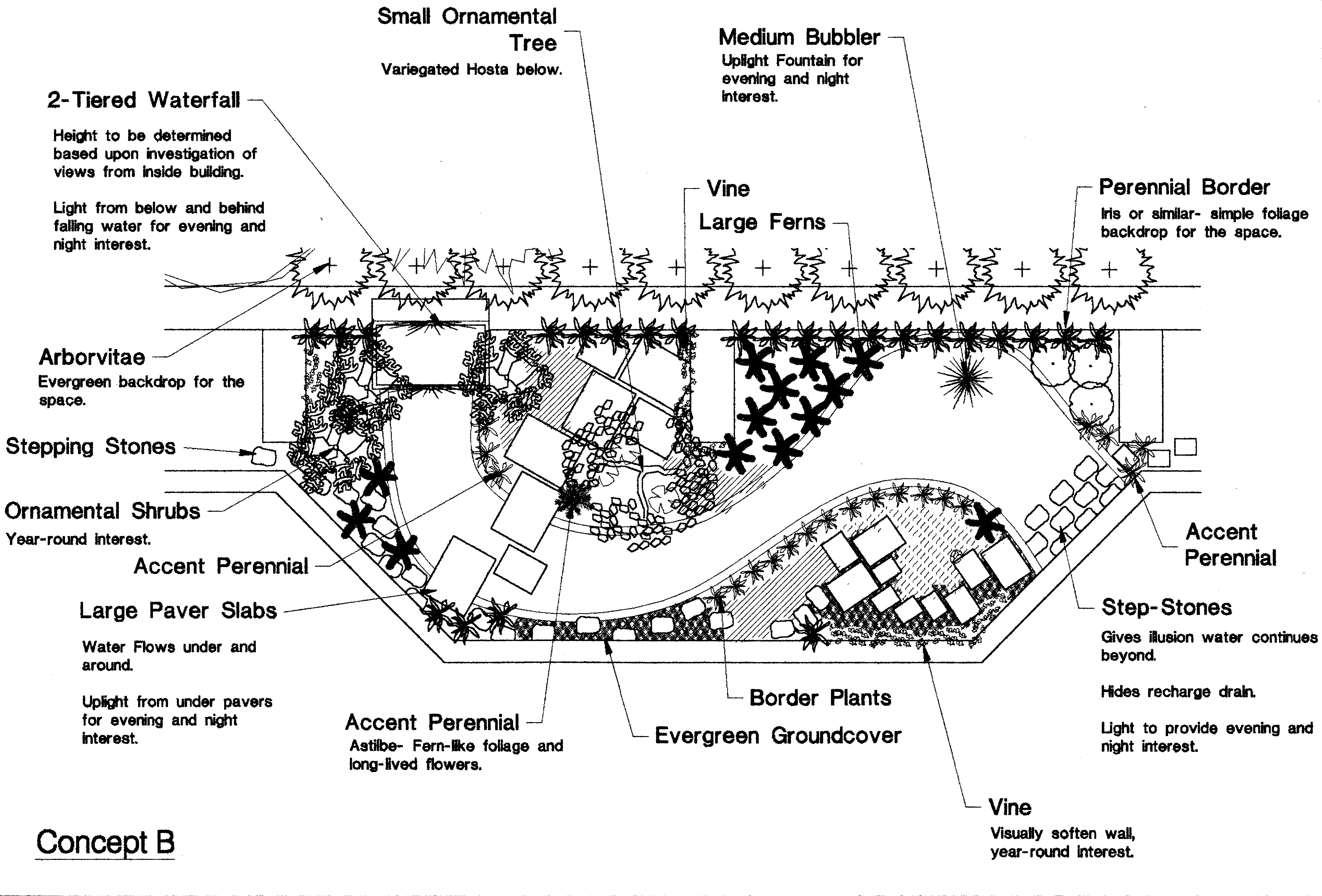 Previous Image Next Image mca-img005 A concept for a water feature designed by Alexia for a garden outside a restaurant dining room.