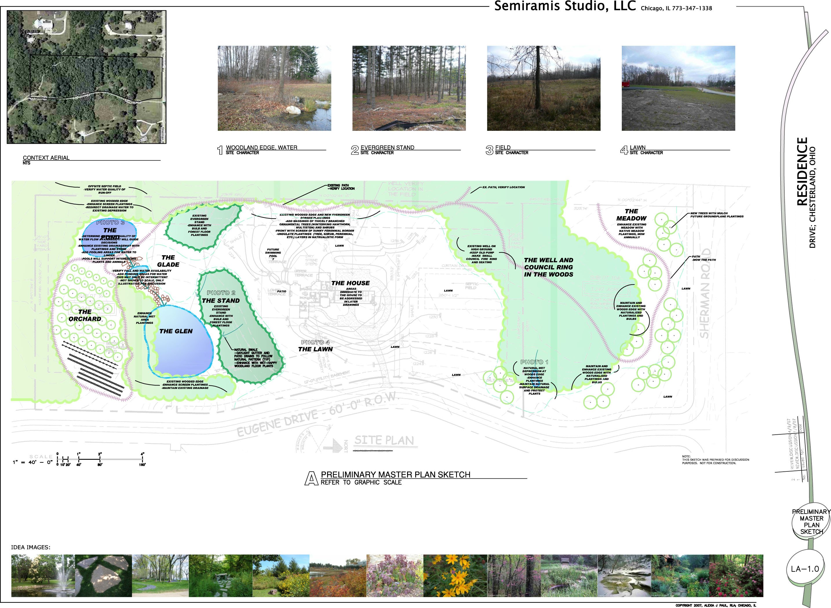 The Studio prepared this masterplan for a residential client who wanted an orchard, food gardens, the woods restored, and spaces for entertaining near the house. The site has a significant grade change and wonderful existing trees. The project is receiving on-going maintenance and stewardship by the contractor who did the installation. It is really thriving!